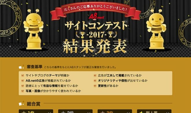 お知らせ・会社広報 | 2020/02/14 Update!A8サイトコンテスト2017で弊社運営メディアが総合3位になりました