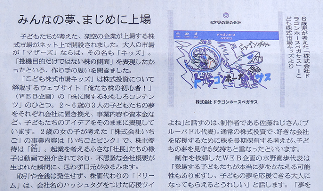 お知らせ・会社広報 | 2020/02/14 Update!弊社運営サイト「こども株式市場キッズ」が朝日新聞社に紹介されました