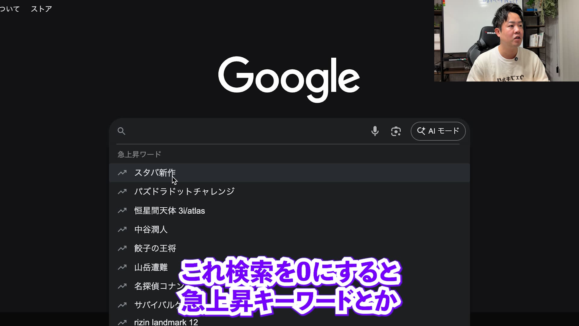 例えば、特定の時期にだけ検索回数が増えるものもあります。私がこの動画を撮影しているのは年末なのですが、一文字「す」と打つだけで「スタバ新作」や「福袋」といった候補が出てきます。