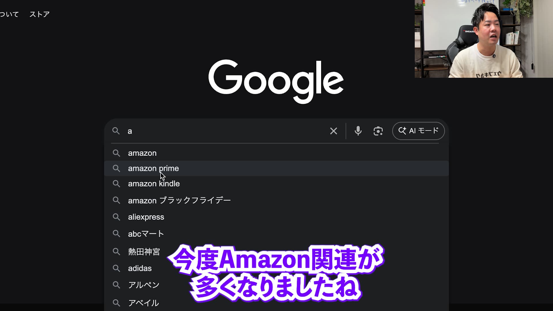 実際に試してみると分かります。一度「a」と打って「Amazon」を検索した後に、もう一度トップページに戻って「a」と打ってみてください。すると、先ほどよりもAmazon関連のキーワードが優先的に表示されるようになります。