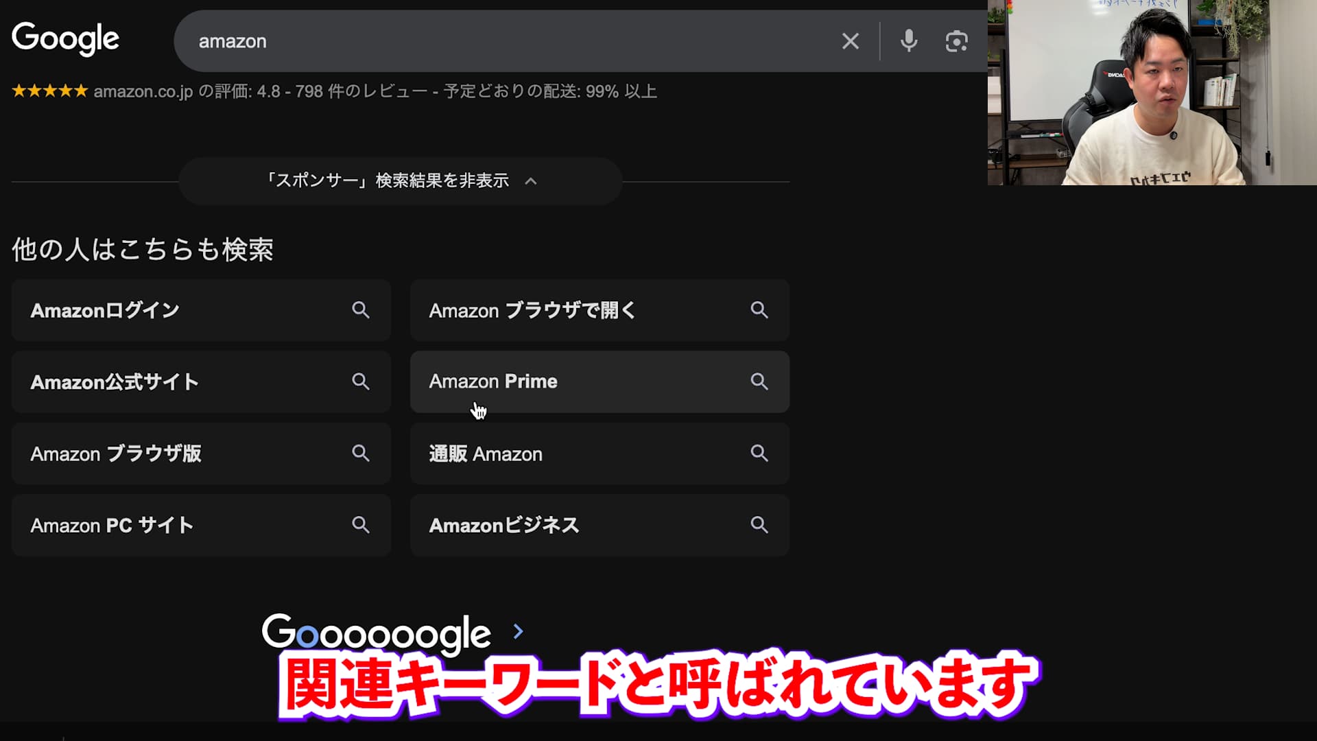 サジェストキーワードとよく似た言葉に「関連キーワード」というものがあります。これは検索結果画面の下の方などに表示されるものですが、サジェストとは仕組みが明確に異なります。
